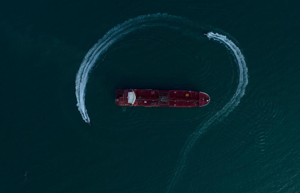 这是2019年7月21日,在伊朗霍尔木兹海峡附近水域,伊朗伊斯兰革命卫队船只在被扣押的英国油轮“史丹纳帝国”号周围游弋。新华社/伊朗学生通讯社